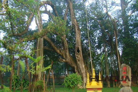 的曼短佛寺,傣語稱之為"瓦拉扎探",位于縣城西南約10公里。是當地傣族同胞從事宗教文化活動的中心。據史籍記載,佛寺始建于950年(時為大理政權),距今已有千余年歷史,是小乘佛教傳入后 早興建的佛寺之一。