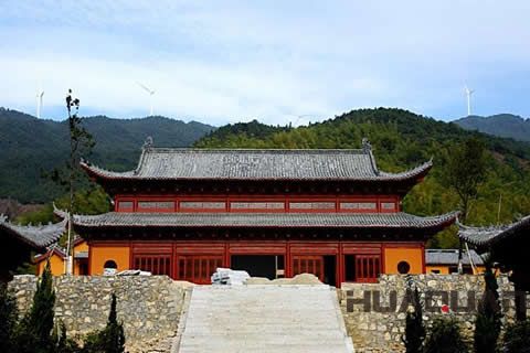 而寺院就坐落在主峰下名叫“黃龍出洞”的地方,坐東面西,寺前有一湖泊,名叫“無念湖”,原是一個小型山盆,后儲水自然形成,長平如鏡。明代思想家、文學(xué)家李贄曾在此講學(xué)隱修、著述撰文,留下了大量人文古跡,如花潭書院、古書院、古茶院、魚躍龍門等。
