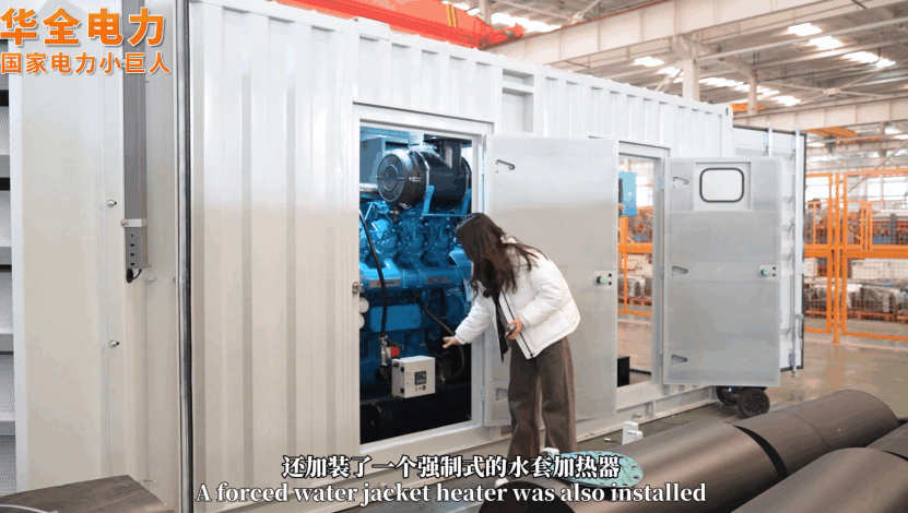 華全電力的集裝箱發電站,配備了強制型水套加熱器,在啟動前就給機組內的柴油、機油、防凍液等加熱,快速達到負荷運轉要求。