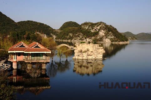 煙波浩渺的百花湖中分布著大小島嶼100多個,遠眺之下,還有幾分江南水鄉的韻味。每逢春天,湖上諸島便會百花盛開,姹紫嫣紅,一片生機勃勃,故而得名“百花”湖。整個百花湖景區包括中湖、南湖和北湖三部分。由于百花湖為“河湖相連”,上游和下游都是狹長的河谷。尤其是它的上游河段,兩岸青山比肩而對,形成了的一線天。目前,這里已開發出松林遠眺、雙猴守園、百花雙峽、群峰疊翠、金蟾戲水、孤峰獨秀等數十個景點。