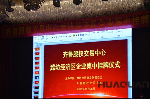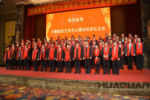 11月28日,風和日麗,暖風習習,齊魯股權交易中心山東省濰坊經濟技術開發區企業集中掛牌儀式在濰坊新富佳悅大酒店會議中心成功舉行。儀式上,包括濰坊華全電力有限公司(股權簡稱:華全動力,股權代碼171006,掛牌價8.10元)在內,來自開發區內的27家企業成功登陸齊魯股權資本市場。