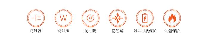 具有短路保護、過溫保護、過壓保護、過放保護、過沖過放保護、過載保護等多種保護機制。